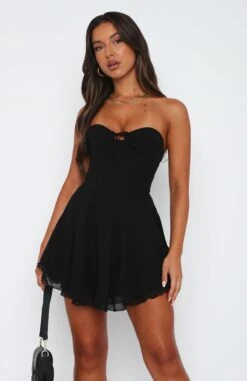 You can never have too many black dresses and this one is guaranteed to out-win them all! Featuring straight neckline, strapless, grip tape, hidden side zipper with hook and eye and lined, ruched detail, asymmetric hem and sequin fabric. Pair with gold accessories and perspex heels and let the dress do all the talking!