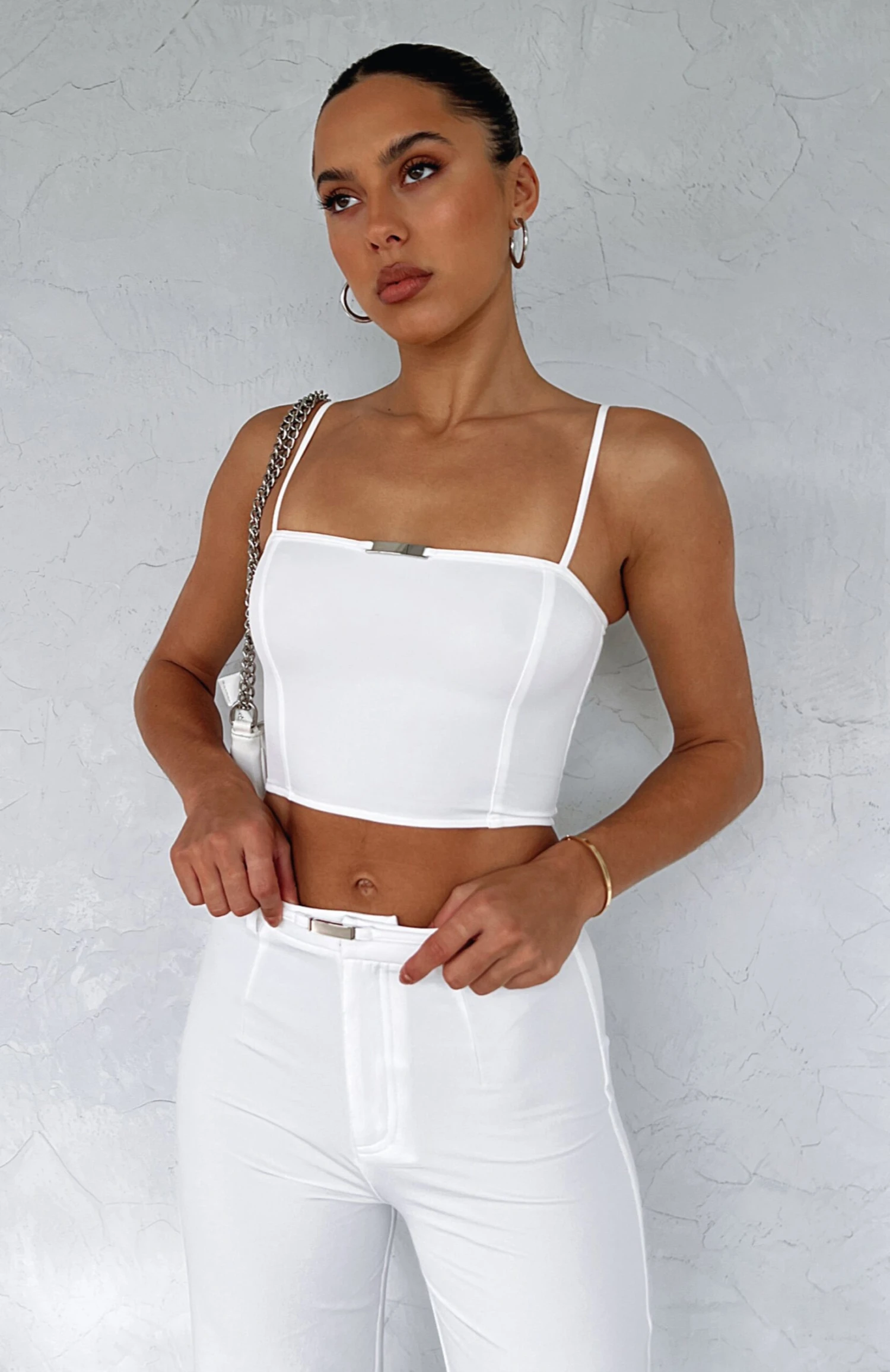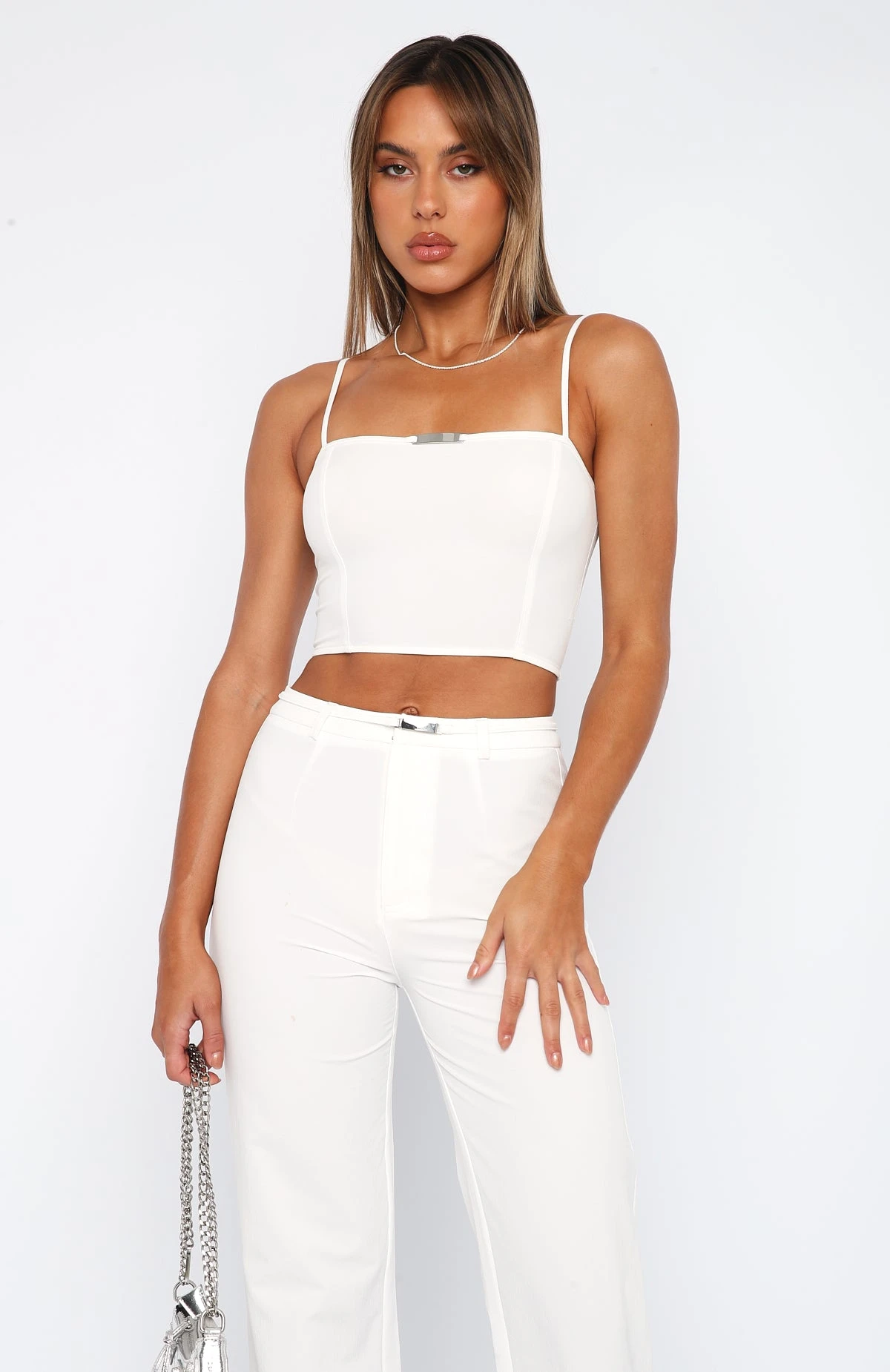 Bring the heat to your weekend wardrobe with the Make Me Wonder Crop in White. Featuring thin, adjustable straps and zipper centre back. We love this paired with the matching Winter Love Pants and sunglasses for a cool girl fit!