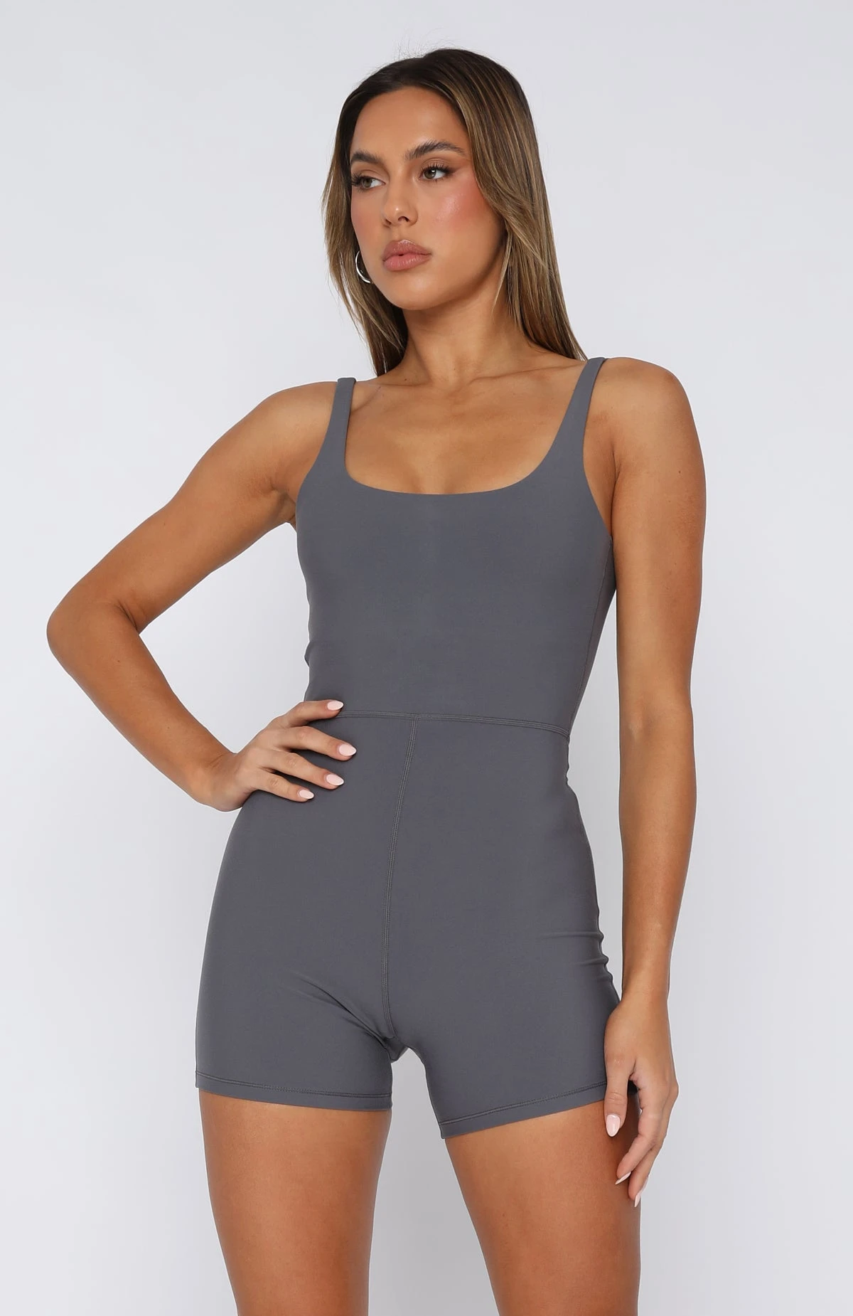Be ready for your next gym session with the Serena Playsuit in Smoke.Ā FeaturingĀ thick straps, scoop neckline, mini short length, open back design, SD X WFA logo centre back, removable padding and stretch fabric. Pair with gold accessoriesĀ and sneakers for a dreamy workout look!